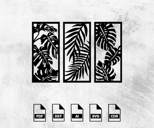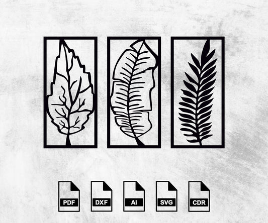 3 Piece Laser Cut Leaf Wall Panel Art Frame : Style - 1