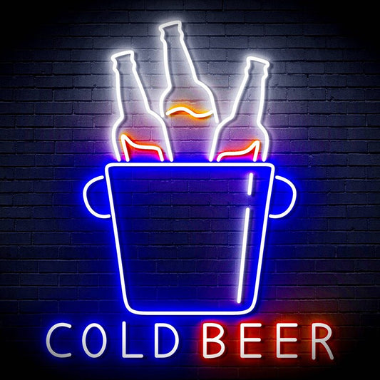 Cold Beer with Bucket Neon Sign