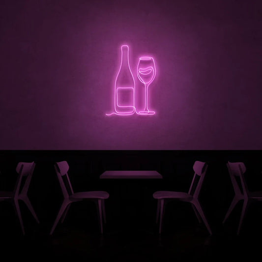 Wine Bottle & Glass LED Neon Sign
