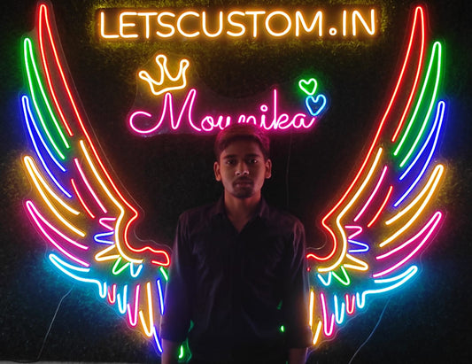 Custom Logo, Wings & Quote Neon Sign - MMC Restaurant