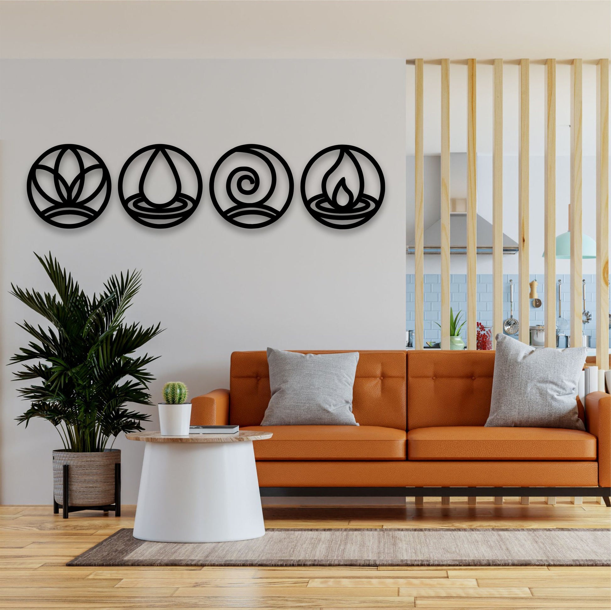 Add a touch of elemental charm to your walls with our 4 Elements Wall Art Decor. Crafted from engineered wood, this stylish piece will bring a unique and playful vibe to any room. Let the elements of nature inspire your home decor.